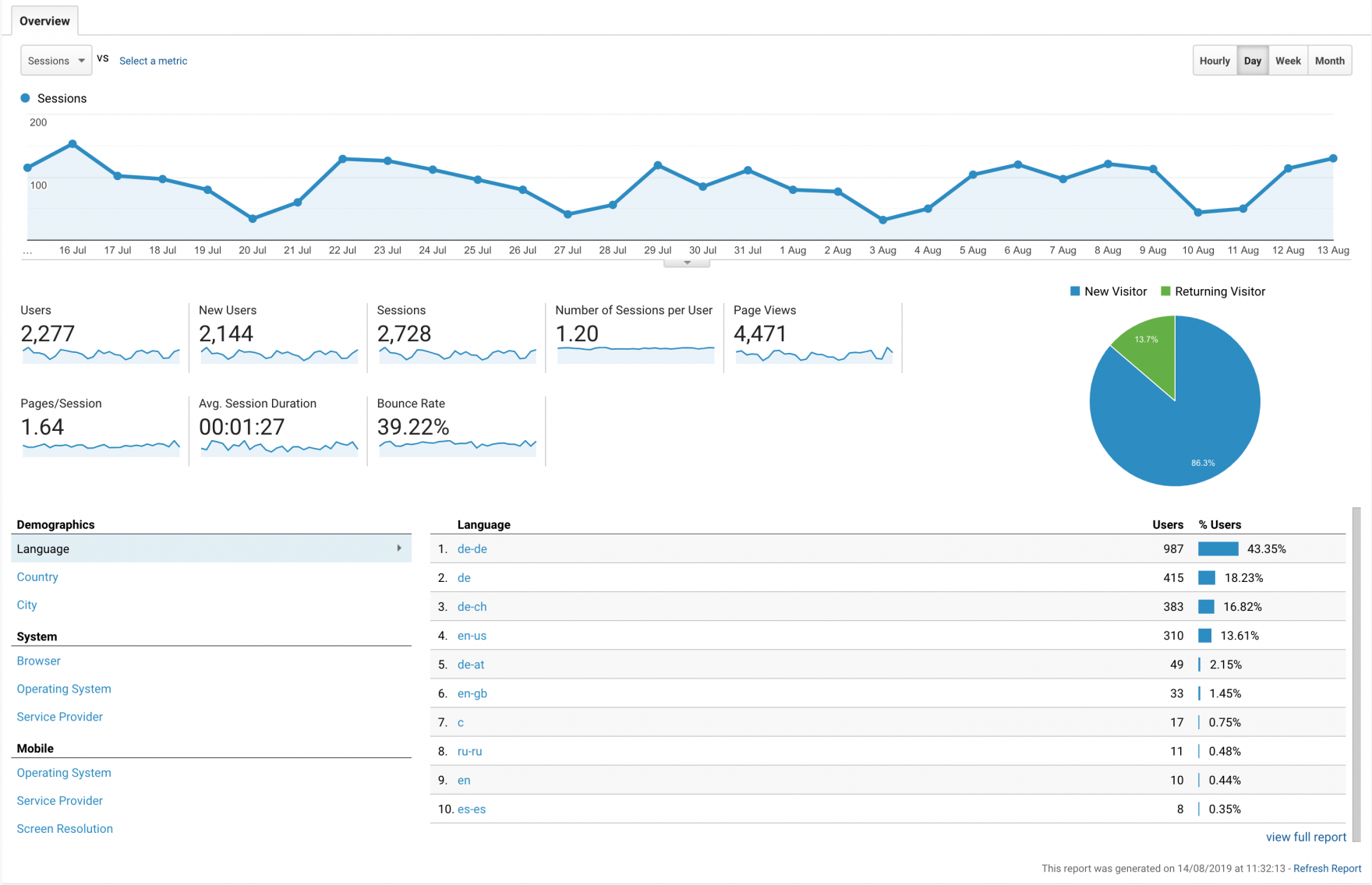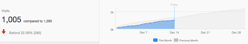 Im Vergleich zum Vorjahr haben wir bis heute 20'000 Visits (2'000 zusätzliche, +10%) und 500 Kontakte (100 zusätzliche, +20%) generiert.