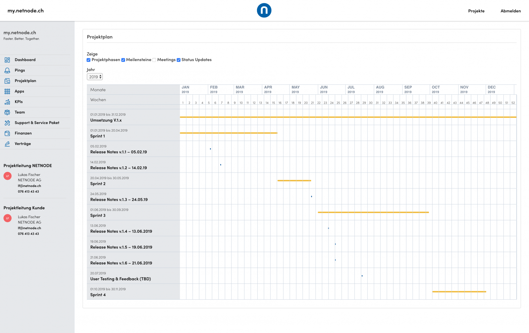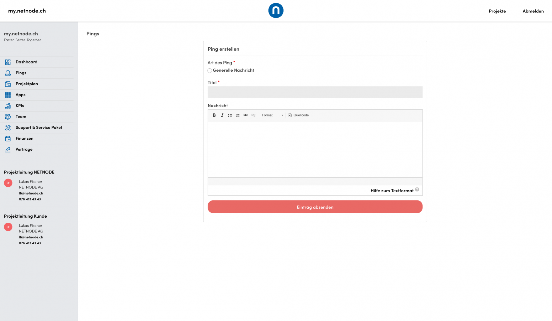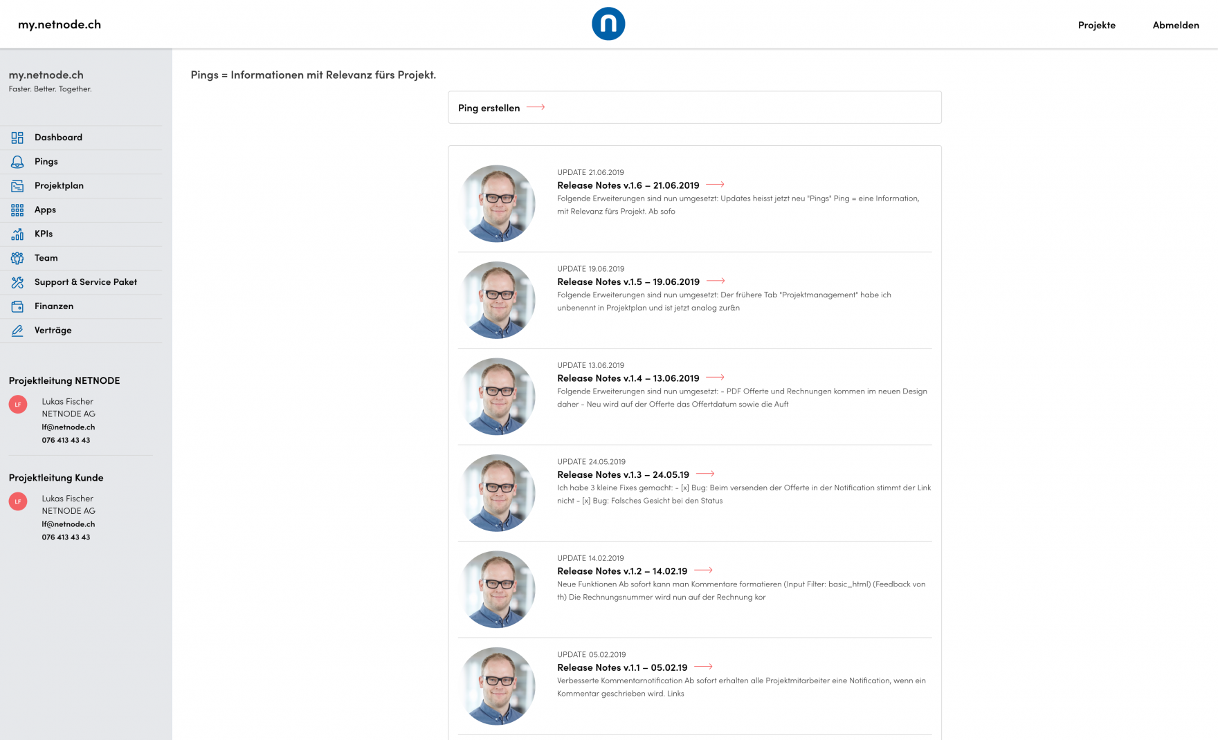 In Kombination mit dem Projektplan bieten Pings die ideale Schnittstelle zwischen Planung, Fortschritt sowie Details (Konzepte, Spezifikation, Tasks).