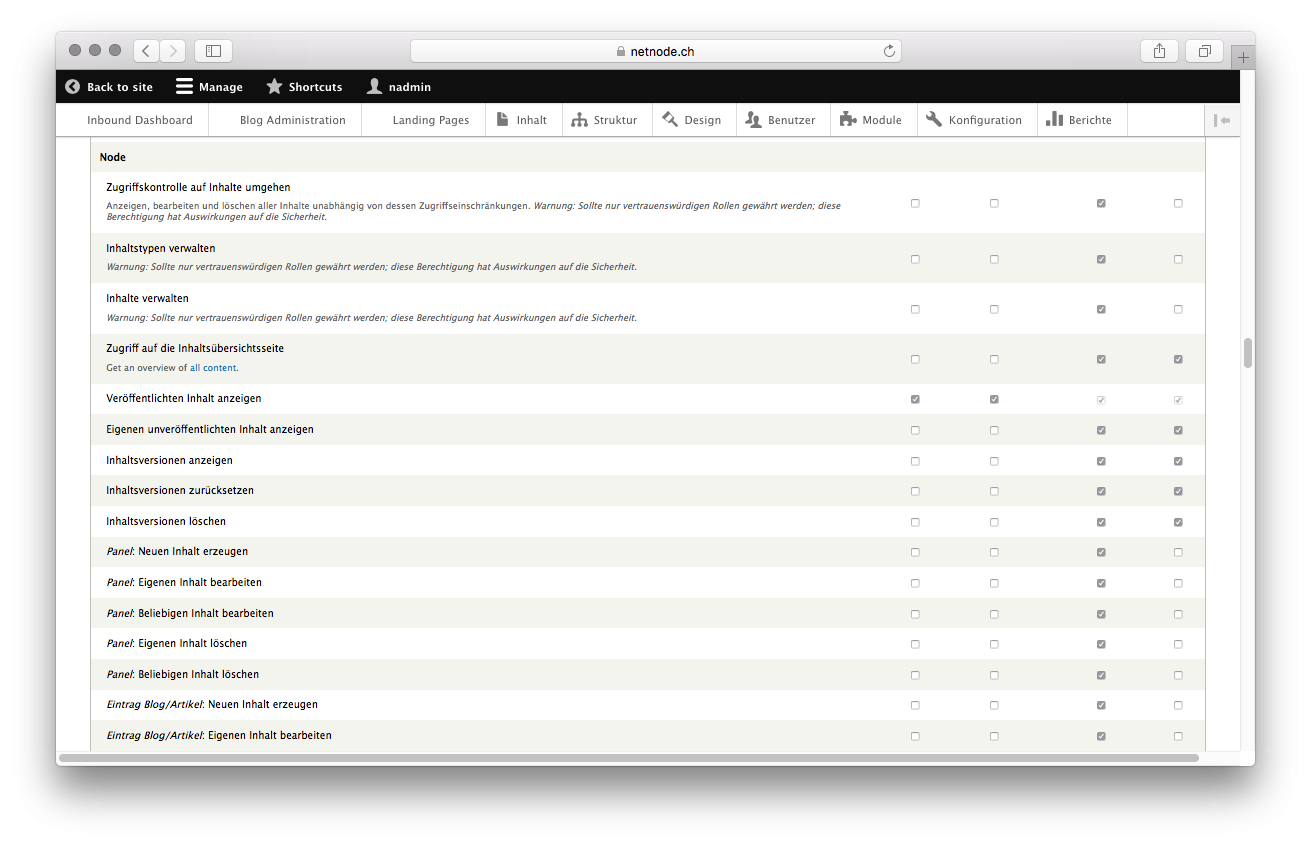 Drupal hat eines der modularsten Berechtigungssysteme, welches in einem CMS zu finden ist. Die Berechtigungen für Rollen lassen sich so einstellen, dass die User nur das sehen und tun können, was sie wirklich sollen. Nichts wird aus Versehen gelöscht oder verändert.