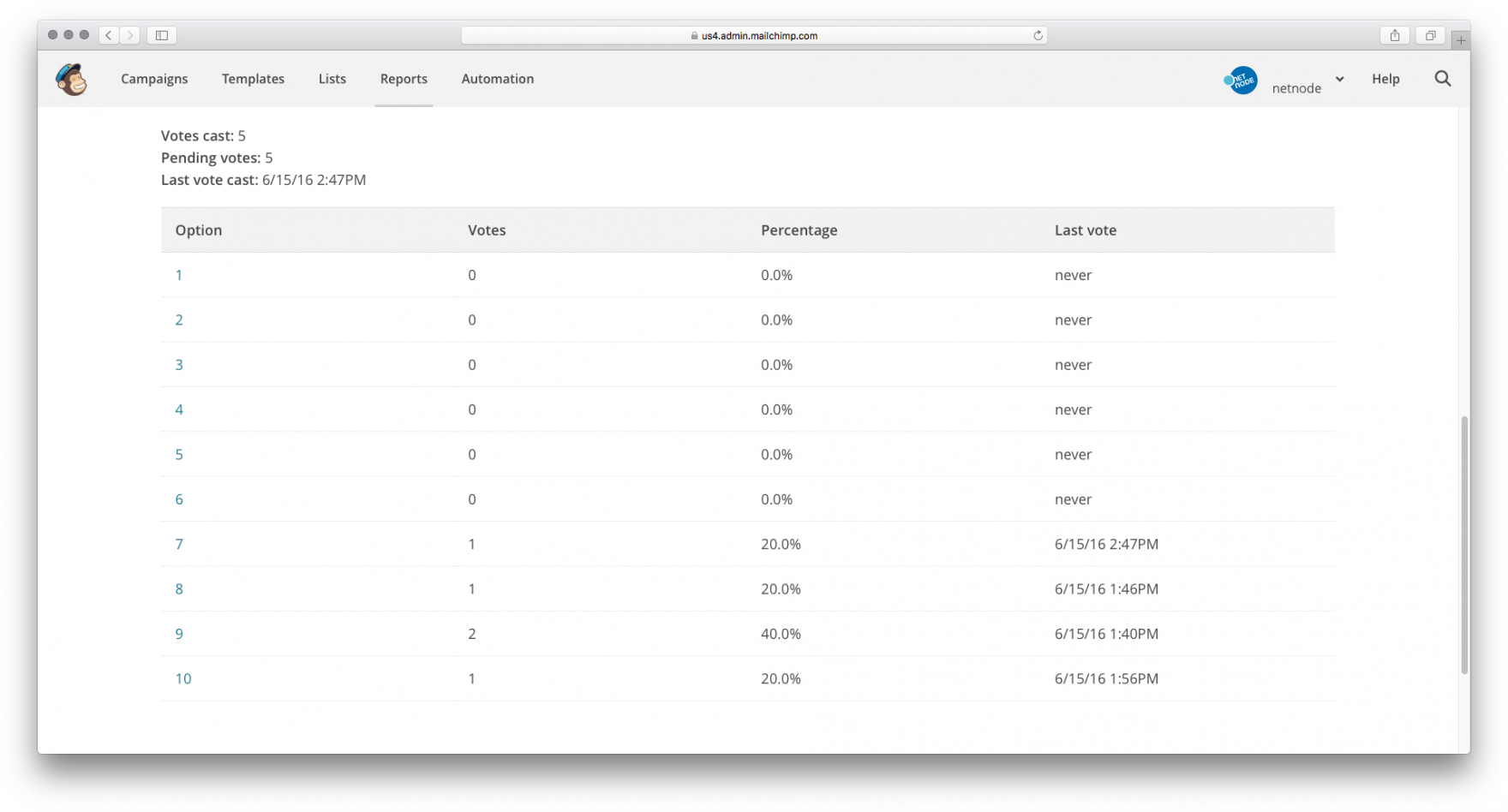 Klickt man auf einen Link unterhalb von Option geht, erscheint ein Pop-Up, das zeigt, welcher Empfänger geklickt hat. Ausserdem hat man eine Übersicht, wie viele Empfänger bereits abgestimmt haben und wann die letzte Aktion stattgefunden hat.