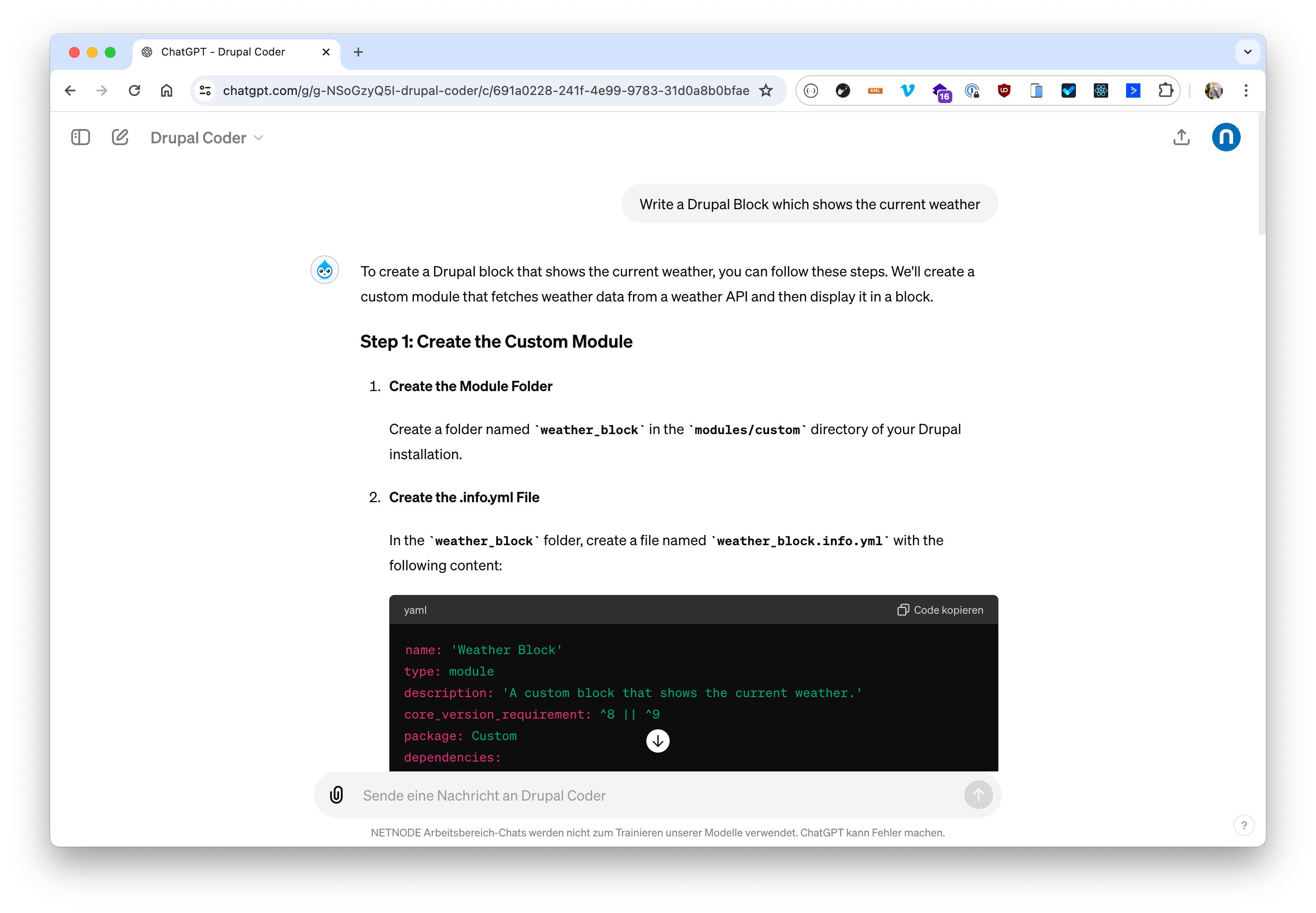 NETNODE AG stellt "Drupal Coder" vor – Ein spezialisiertes GPT für Drupal-Entwicklung
