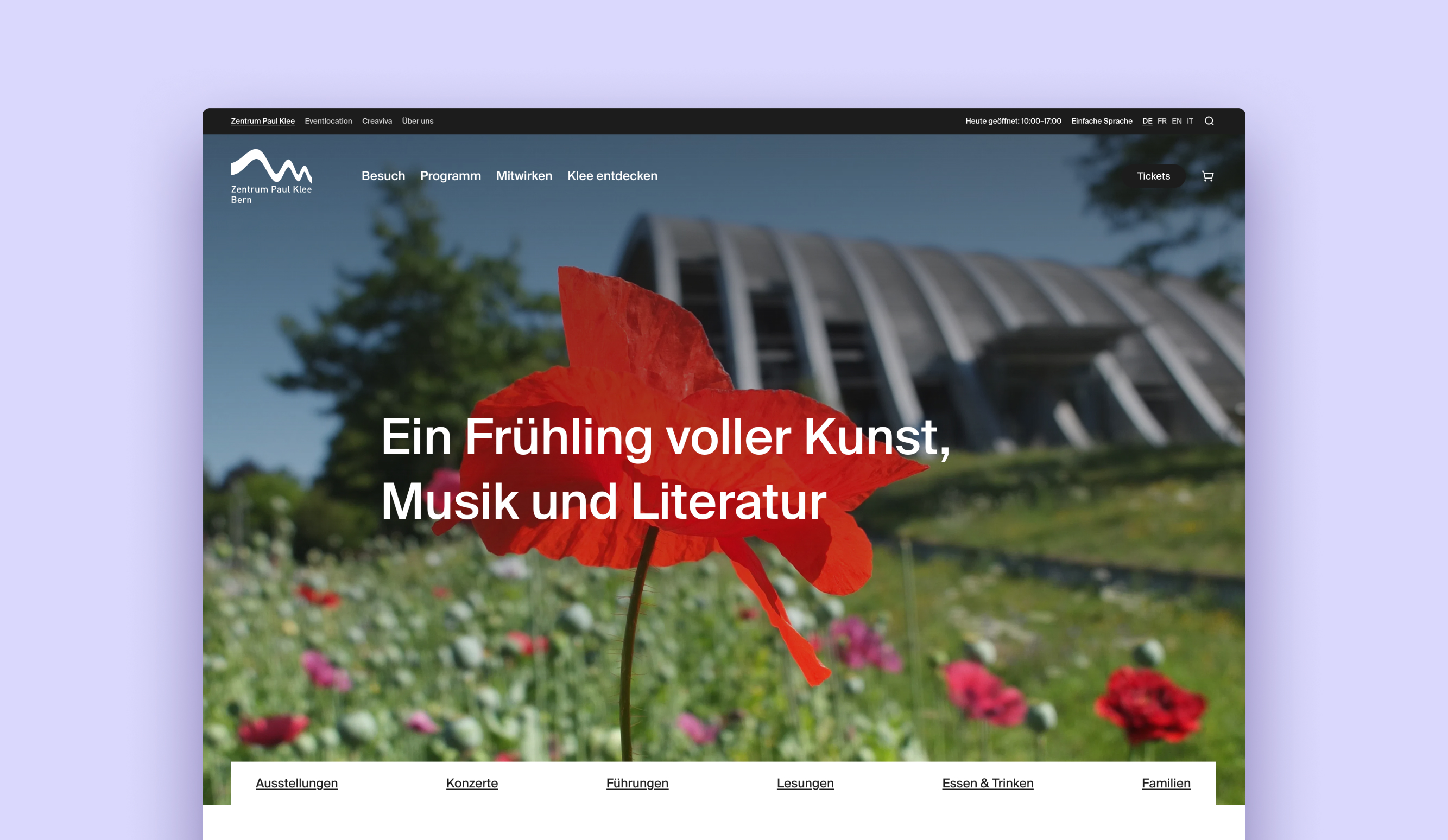 Breites Angebotsspektrum: Das Zentrum Paul Klee bietet zahlreiche Ausstellungen, Veranstaltungen und Programme an. Eine klare und verständliche Kommunikation ist notwendig, um Besucher:innen effektiv zu informieren.