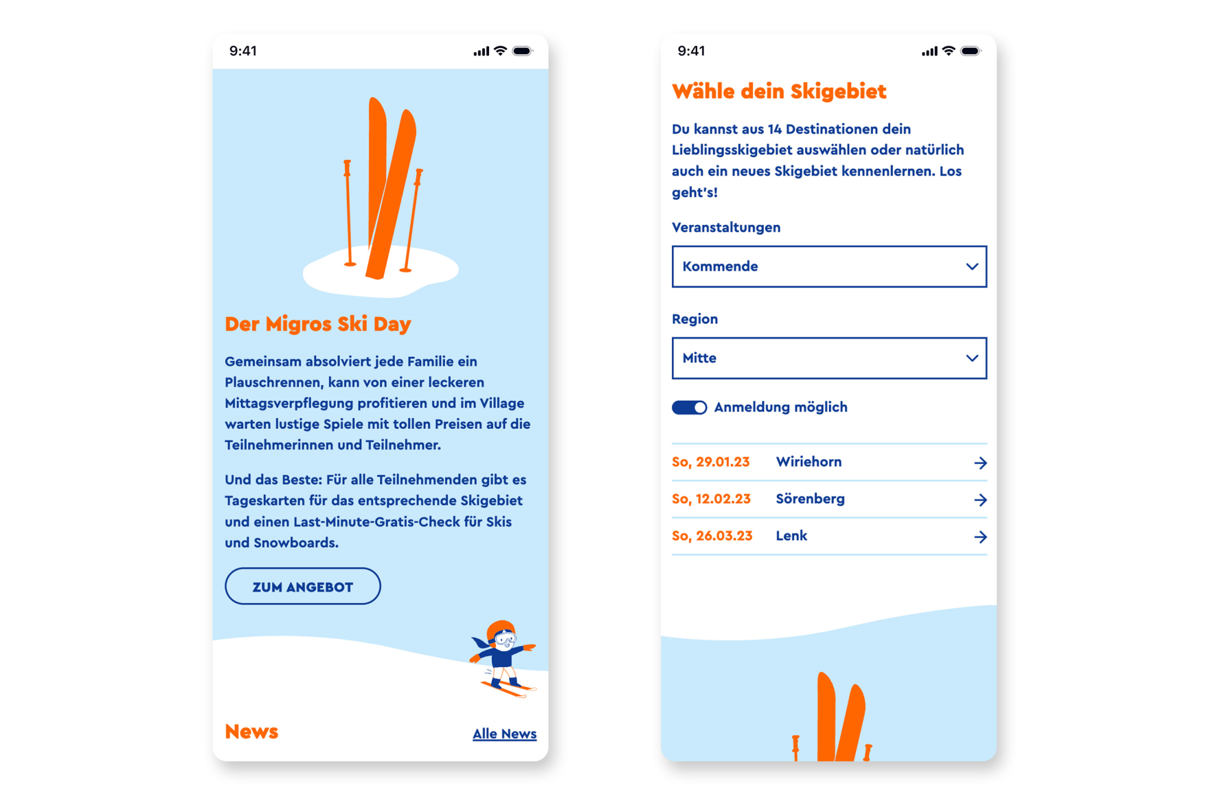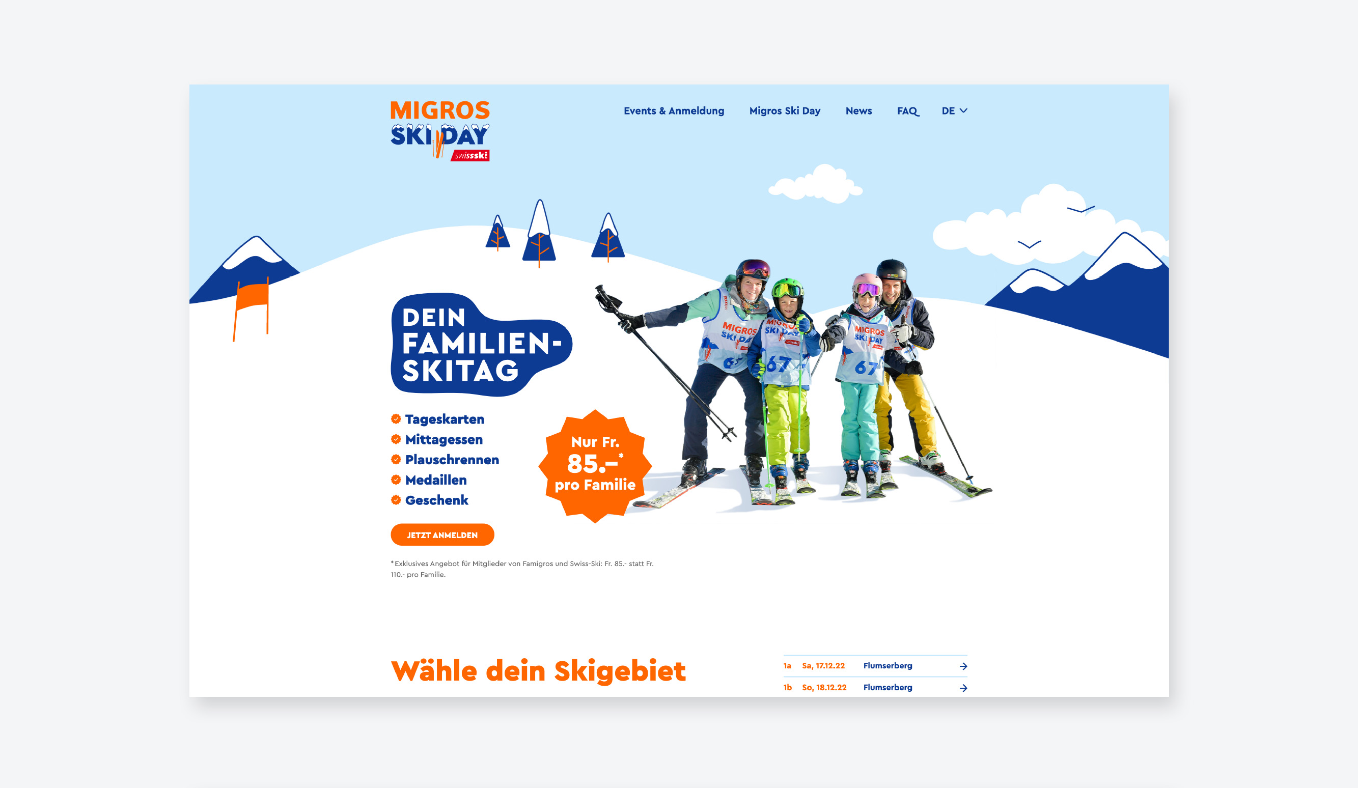 Die Familien erhalten die Informationen zum Migros Ski Day auf einer visuell ansprechenden Webseite. Die Anmeldung erfolgt im gleichen Tool.